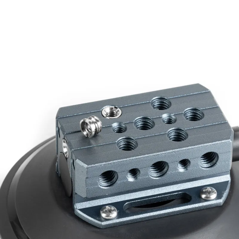 Attach the 9.Solutions 6 Suction Cup on virtually any flat, dry surface. The cup features an aluminium cheese block with 3/8-16 and 1/4-20 holes on the top and sides. The tapped holes are spaced 1 inch apart and come with 3 x 3/8-16 to 1/4-20 sockets. The cup pads are made of durable and flexible UV resistant rubber. The suction pump is made of aluminium (not plastic) for long-lasting use.
