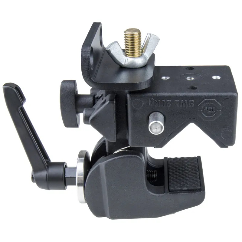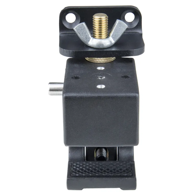 An L-shape tiny bracket that fastens the LD system array CURV 500 SLAT with a Convi clamp. Made of 4.5mm thick rolled steel, it is sturdy and durable. The bracket is machined with: