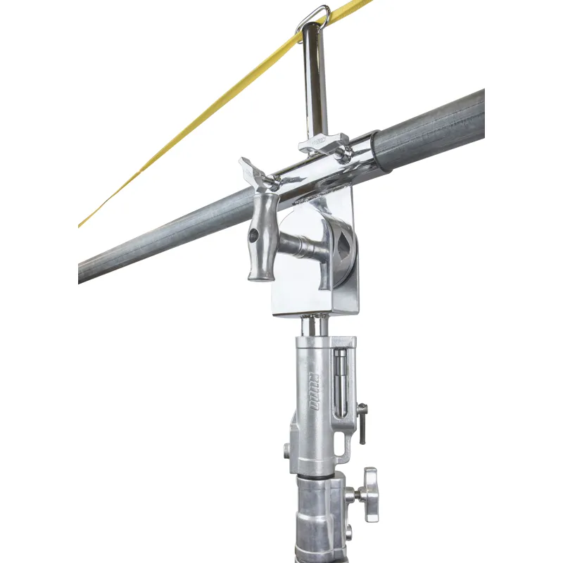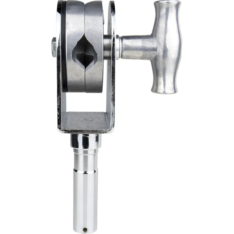 The 4.5 Center Grip Head consists of a pair of rotating aluminum discs attached to a junior 28mm (1-1/8) stud. The discs have two different sized V-shaped jaws to accept any accessory with a 5/8 or 3/8 mounting stud or tubing. They are often used for clamping ears from an overhead or butterfly system. The U-shaped rotating disc holder, welded with a junior 28mm (1-1/8) stud, is specially designed for centering the weight over the stand.