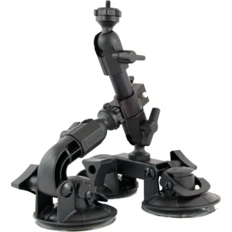 Delkin Devices Fat Gecko Triple Mount is designed to hold DSLRs and camcorders up to 5kg. The mount combines a Fat Gecko Original with a Fat Gecko Mini mount, and a slide and lock design ensures secure attachment between the two mounts. By combining the two into one mount, Delkin has created a sturdy mount that affords three industrial locking suction cups for increased stability. Plus, the suction cups can adjust to the contours of your smooth, non-porous shooting surface. The mount locks into place and features six adjustable points, which ensures you'll get the mount set to the perfect angle for every shot. The mount also features a standard 1/4"-20 tripod head for universal compatibility. A rubber washer and tightening knob provide added vibration dampening as well.