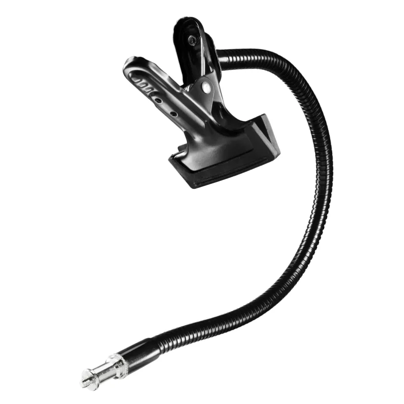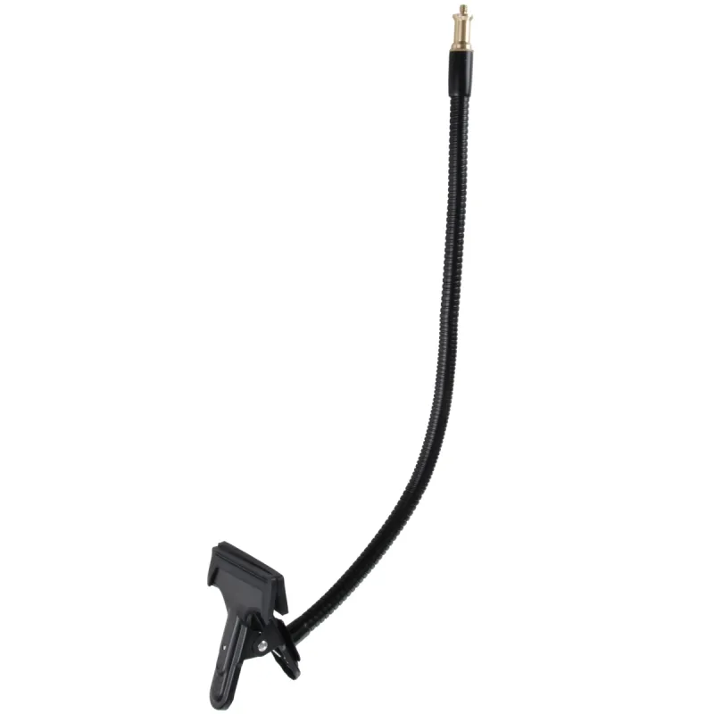 Detect the new Simple! You would like to make a lot and love it simple? We will help you! With the Gooseneck from walimex we provide a smart solution for mounting reflectors, compact flashes and Co. Just attach the clamp on a base up to max. 5cm and you already have the adequate basis for your photographic work. At the Gooseneck, which is approx. 53cm long, equipped with a 1/4 inch spigot and very flexible, you can then mount your required utensils. We say: Simply perfect for TableTop and Macro photography.