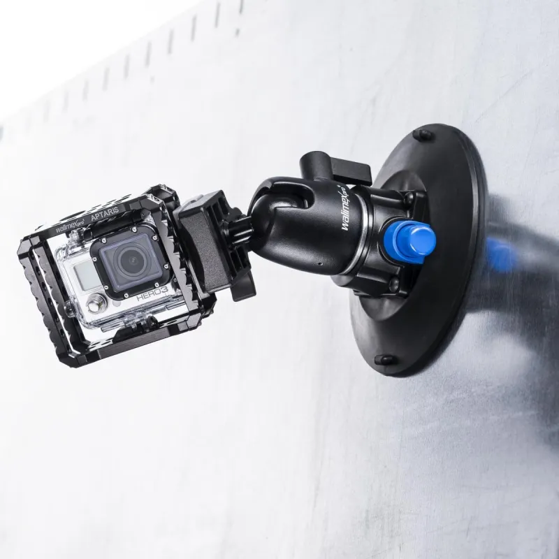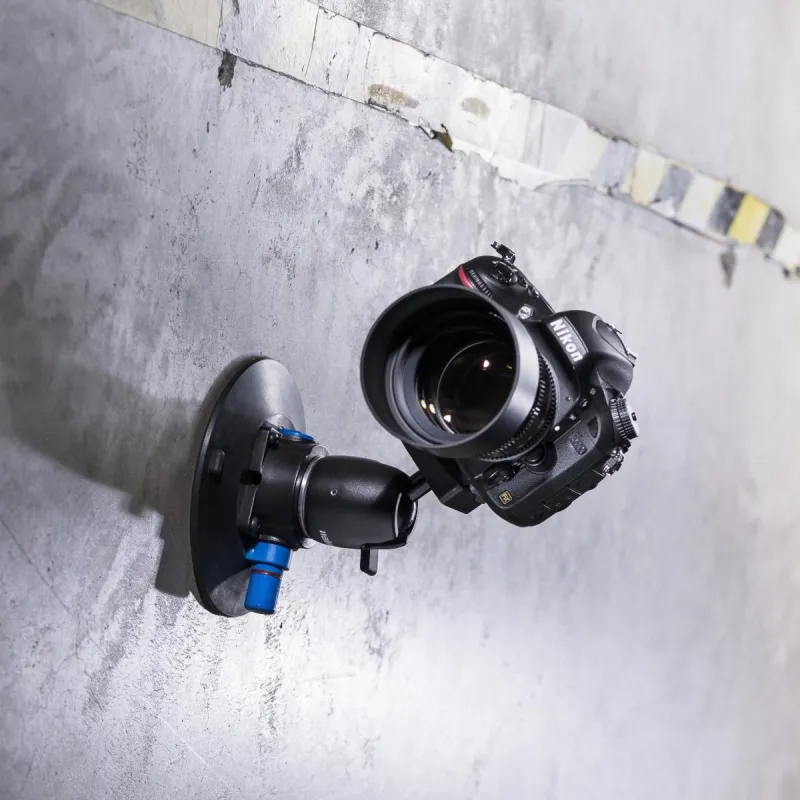 This convenient suction cup holder can be securely mounted to all smooth surfaces, such as e.g. glass panes, doors, wardrobes, inside the car etc. to be able to shoot from unusual perspectives. Overhead shots are just as possible as ground level shots. The scope of delivery includes a convenient ball head incl. quick-release plate with 1/4 inch thread for quick and easy mounting of the camera. The suction cup is appropriate for light photo and video cameras. Do not use in public traffic, such as e.g. on outside of car windows!