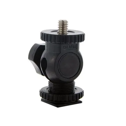 The tilting bracket is equipped with a male thread on the top and a female thread on the bottom. The CLD-5MF is also equipped with a hotshoe connection enabling you to easily mount the tilting bracket on to your camera.