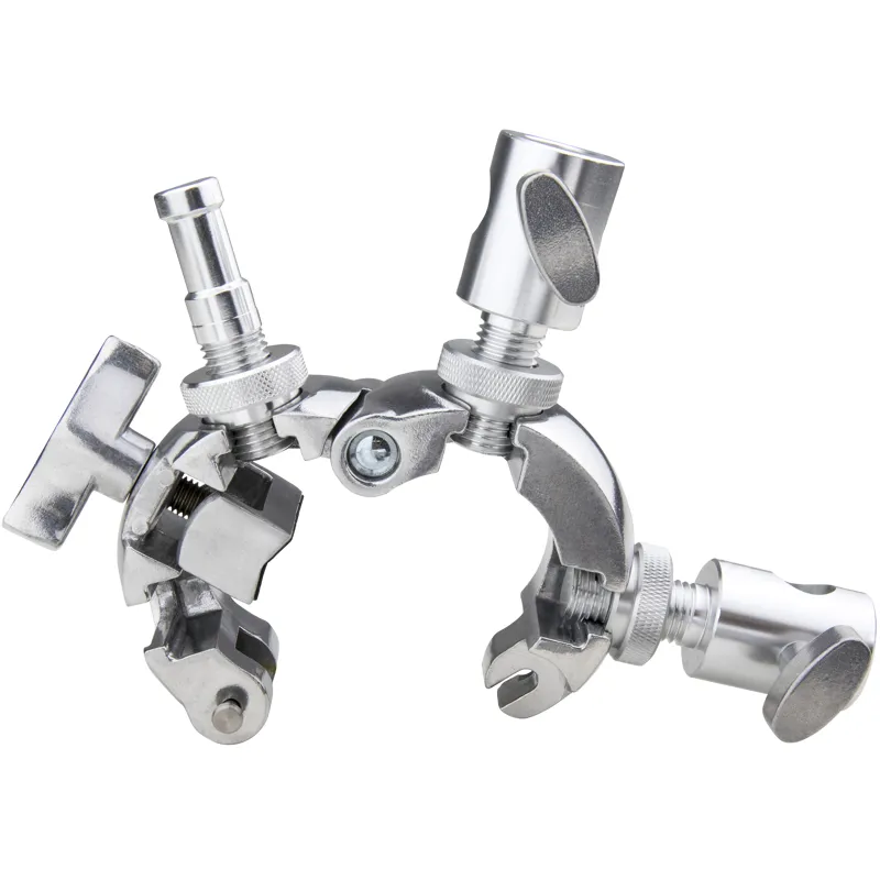 This all-metal cast aluminum clamp features a unique spring locking mechanism that allows you to instantly latch and release the locking collar around any tubing size from 1 to 1-3/4 inches (25 - 35mm) in diameter. Just a quick turn of the tension handle secures it in place, and youre ready to mount any light fixture or accessory up to 30kg to light stands, scaffolds, or Kupoles in a snap!
