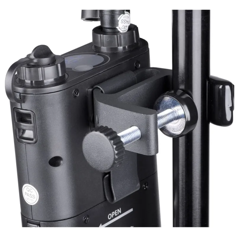 The PowerPack clamp allows you to attach Quadralite Reporter PowerPack 45 to a light stand, tripod, or even to an edge of a flat surface.