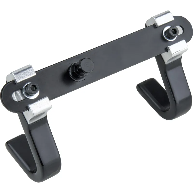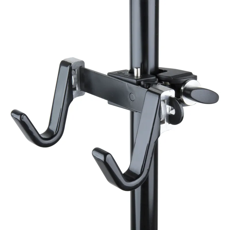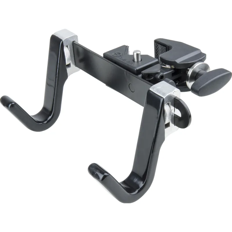 Constructed from solid black painted steel and a rubberized aluminum hook, the docking bracket is designed for operators to place the Ready Rig Vest effortlessly. The 16mm (5/8) baby stud is welded on the back of the steel plate, allowing for a perfect insert into the Super Convi Clamp (KCP-700) and enabling easy mounting of the bracket on the stands. Both hooks can be adjusted with an Allen key to modify the pitch for the MovCam Vest as well.