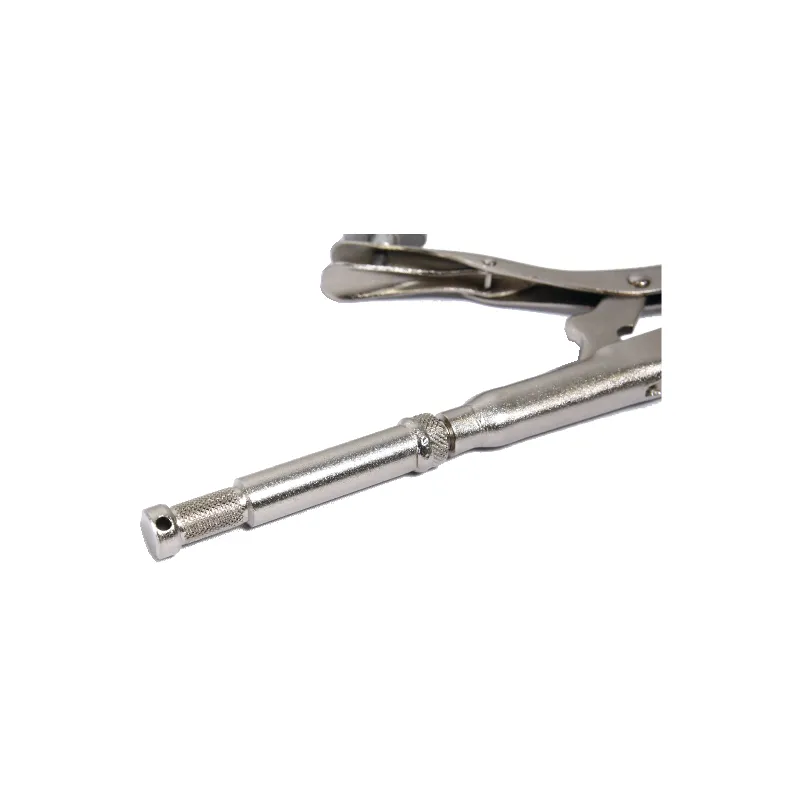 The studs have a knurled texture to prevent fixtures from rotating when locked in place. The release lever has a set-screw with a knob to prevent accidental opening of the clamp when locked in place.