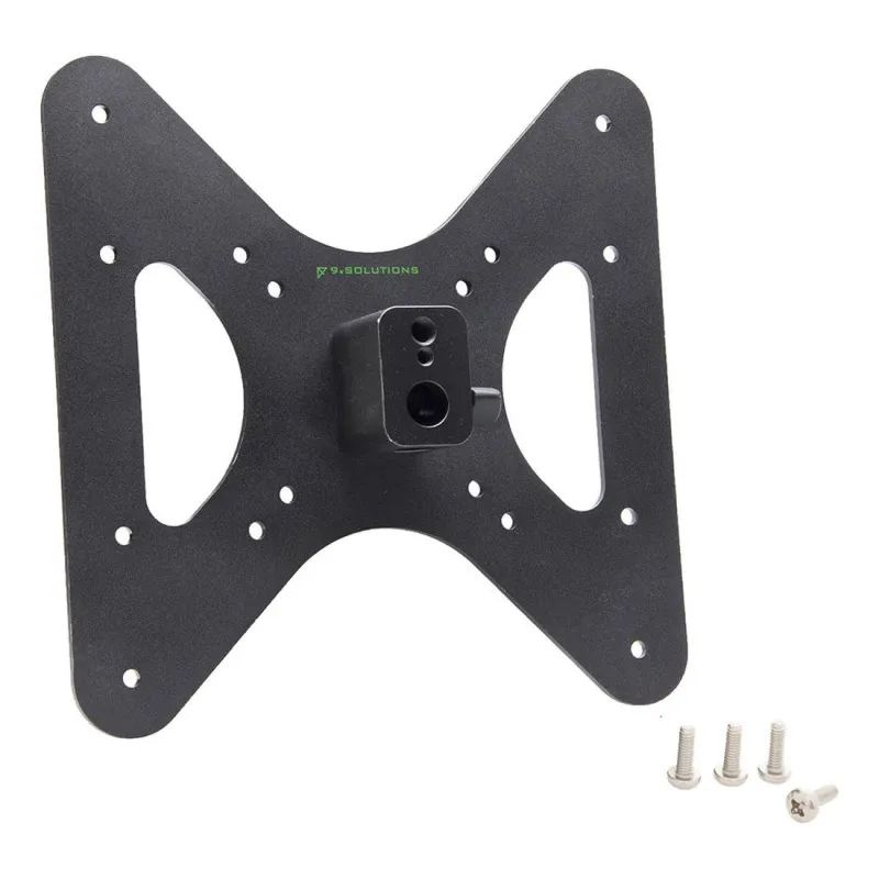 The Large VESA to 5/8” Receptacle allows small, medium, and large VESA compatible monitors to be mounted on standard grip equipment via its 5/8” receptacle or 1/4”-20 and 3/8”-16 female threaded tap-ins. It has two 5/8” receptacles allowing you to mount monitors from below or from the back. The Large VESA to 5/8” Receptacle works well with a variety of industry standard light stands, as well as the 9.Solutions El-Bo Arm (sold separately) that allows you to easily reposition the monitor.