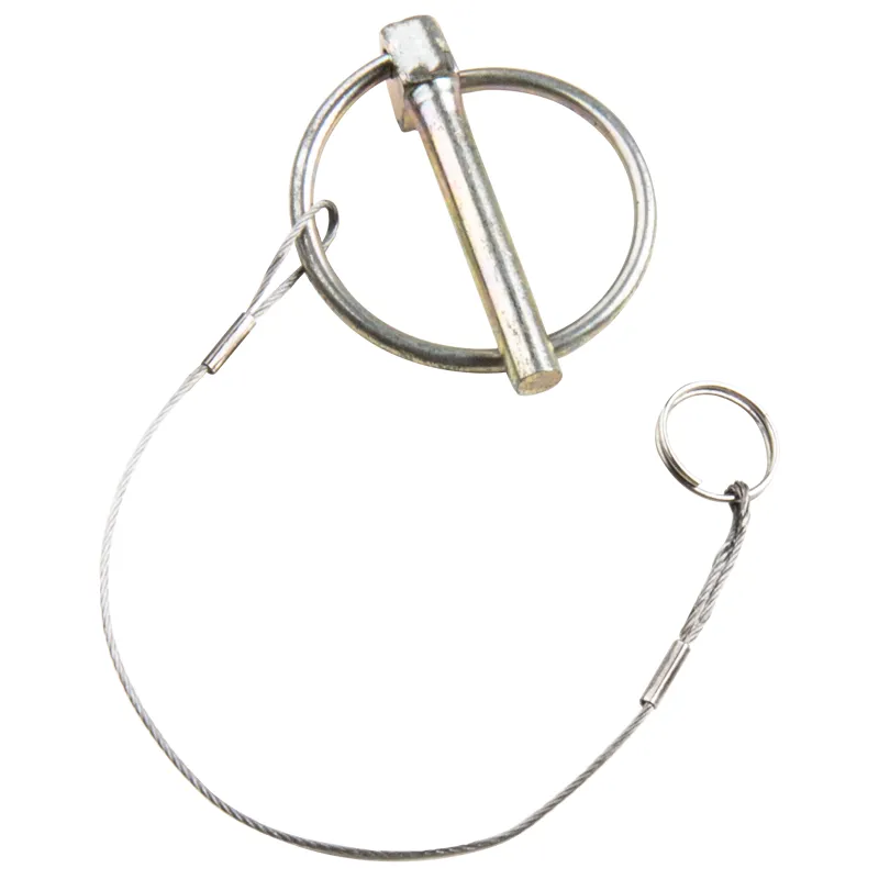 The linchpin is made of durable steel construction with a yellow zinc dichromate finish. It features a latch with an integrated spring retainer, making the fixation easy and firm.