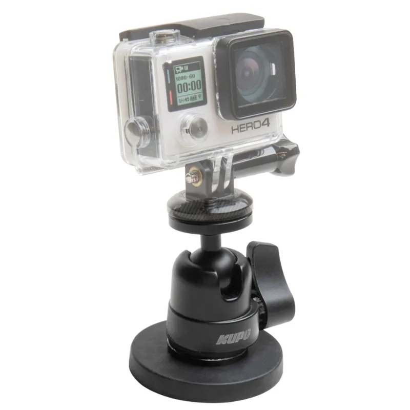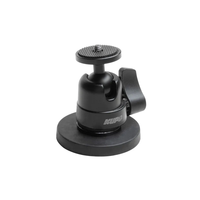 Constructed from a 1/4 threaded magnetic camera bracket and a 360 adjustable rotating midi ball head, this smart gadget is primarily designed for mounting various types of small camcorders, action cameras, or monitors onto flat iron surfaces such as cars, boats, fridges, etc. The protective rubber coating prevents the magnet, which measures 66mm in diameter, from slipping while also protecting the surface finish. The ball head (KS-CB05) is removable from the magnet, allowing it to be mounted on a tripod or any equipment that comes with a 1/4-20 male thread.