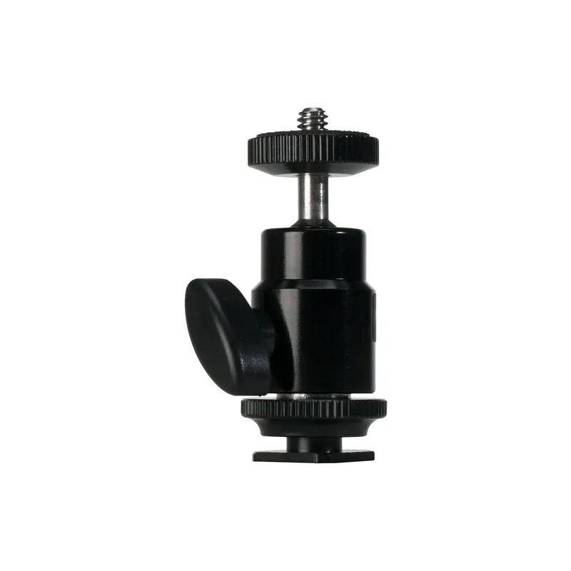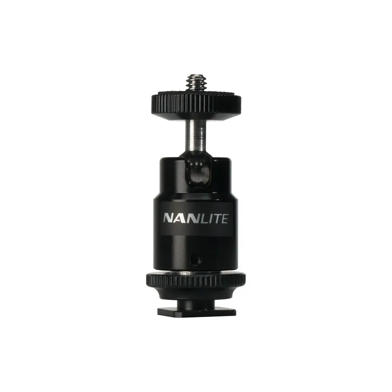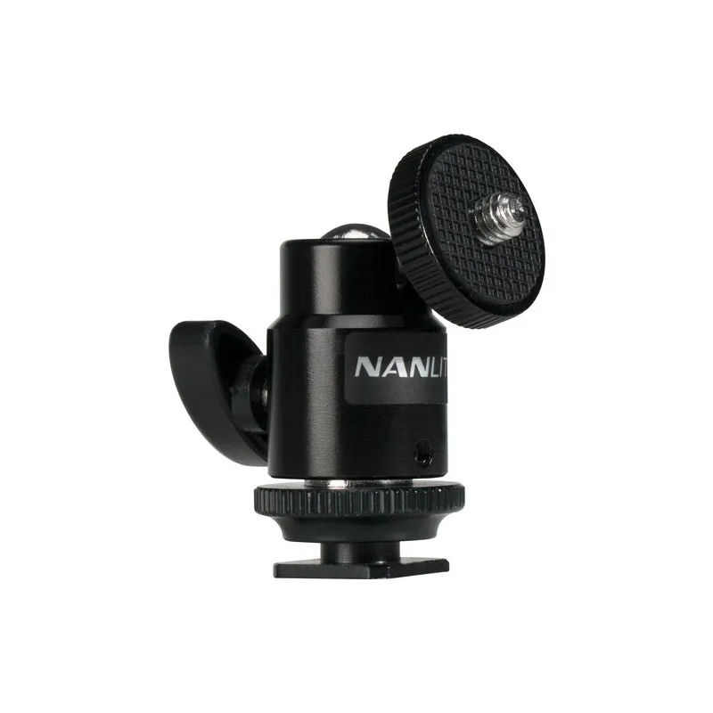 Nanlite Mini Bumba Galva su Karšta Pėda tvirtai įsistato į jūsų fotoaparato karštą pėdą ir taip pat siūlo moterišką 1/4-20 jungtį stovo montavimui. Viršuje yra vieno veikimo užrakinimo bumbulinė galva su 1/4-20 vyrišku sriegiu, kuris yra suderinamas su įvairiais priedais.