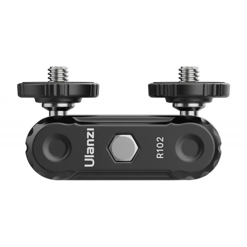 The Ulanzi R102 mounting bracket offers two mounting points with 1/4″ male threads. Each is installed on a small ball head. The quick position locking system will allow you to immobilise the mounts with a single knob.