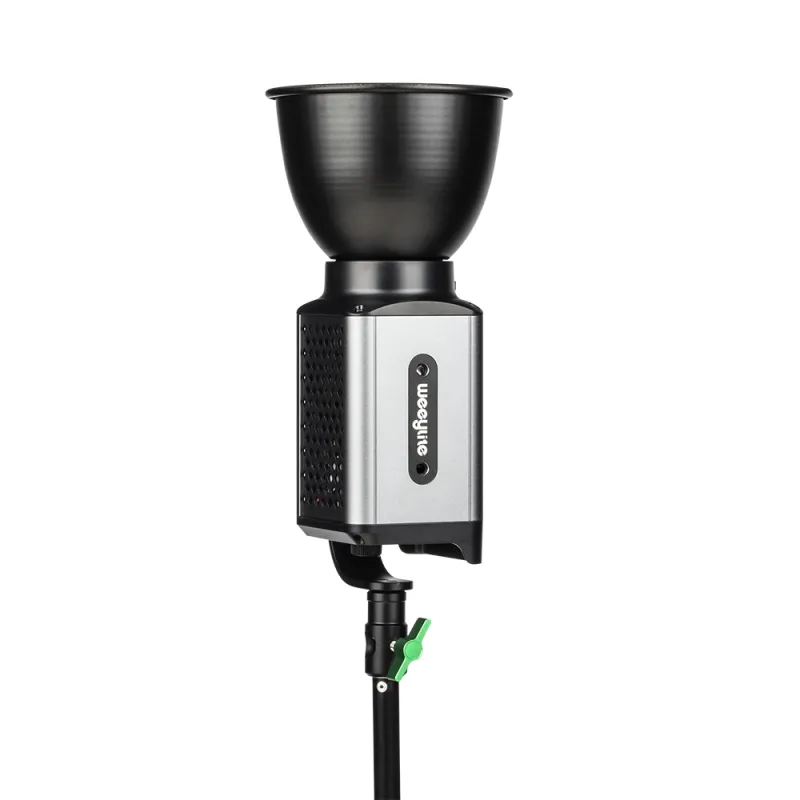 The Weeylite Ninja 200 60W Bi-color LED studio spotlight uses advanced COB LED technology for high light output and good color rendering (≥95 RA). Ideal for studio photography, video, etc. It offers fully adjustable color temperature from 2800K-8500K and intensity from 0-100% (max 5800 lm, 70400 lx/0.5m). Remote control is possible with this model via Bluetooth and mobile app, power is provided by NP-960/970 battery (not included) or external PSU (power supply included). Dimensions 175x92x85 mm, weight 990 g. A less powerful but more portable variant of the popular Ninja 400.