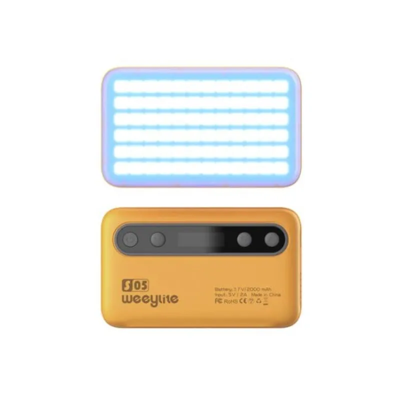 Weeylite S05 fill light is aportable pocket fill light.There are multiple high color (positive white+warm white) and high-quality RGB light beads. It has the advantages of low eneregy consumption,stable color temperature,energy and power saving,long service life, compact size and convenient carrying.It can be adopted in various scenes and perfectly used in photography,video, vlog recording,live broadcasting and so on.