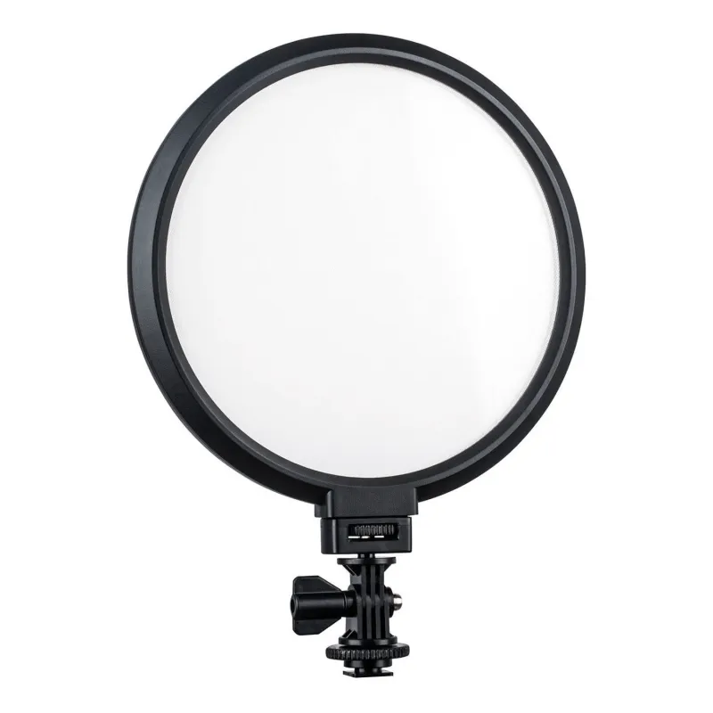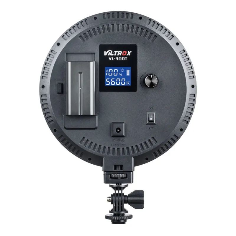Brighten your subjects with this slim VL-300B Round Bi-Color LED Light with LCD Display from Viltrox. This soft, bi-color LED light features a high CRI of 95 for accurate color rendering, an adjustable 3300-5600K color temperature, 20 to 100% dimming, and has a maximum brightness of 1450 lumens.