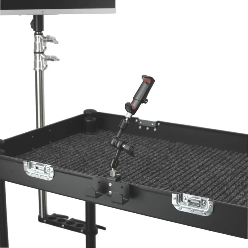 This solution allows you to hang wires or other items. The quick clamp system allows you to quickly put on and take off accessories. It fits all Smartone carts. Additional threaded holes allow you to install extra accessories.