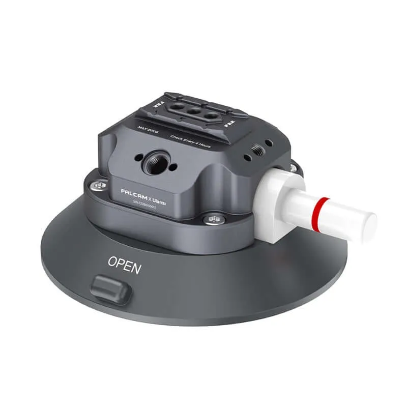 The Falcam Quick Release Sucker 4.5 Inch uses a built in pump that activates vacuum suction, supporting a maximum horizontal suction capacity of 60 kilograms and a maximum vertical suction capacity of 40 kilograms.
