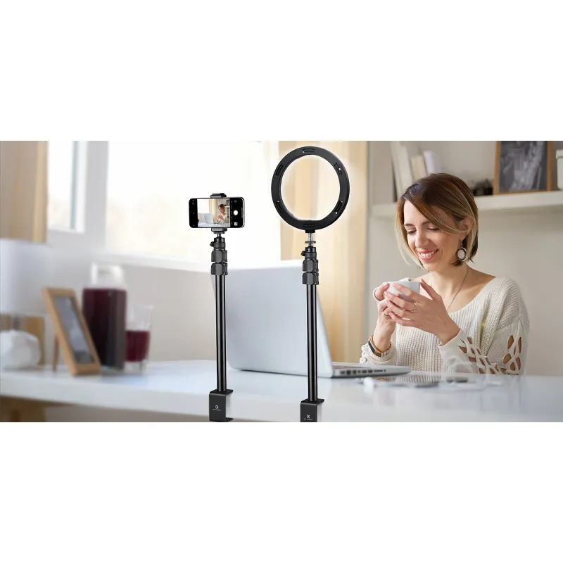 K&F Concept C-Clamp stalinio laikiklio rinkinys apima viską, ko reikia norint sukurti profesionalią foto/video stotį – spaustuko laikiklį, kamuoliuko galvą, apšvietimo tvirtinimą, telefono laikiklį ir sriegio adapterį. Tai leidžia lengvai pritaikyti jūsų darbo vietą įvairiems naudojimams, pradedant studijos įrašais ir baigiant vaizdo konferencijomis bei tiesioginėmis transliacijomis.