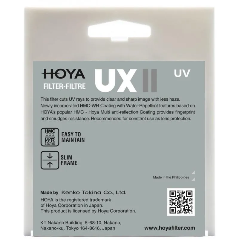 The UX II UV filter with water repellent coating is a redesign of the HMC UV(C) filter, now integrated into the new standard class UX II series along with the UX II CIR-PL filter. The UX II UV filter is a completely new concept design product targeting the entry class users and providing high quality standards with basic and contemporary functions.