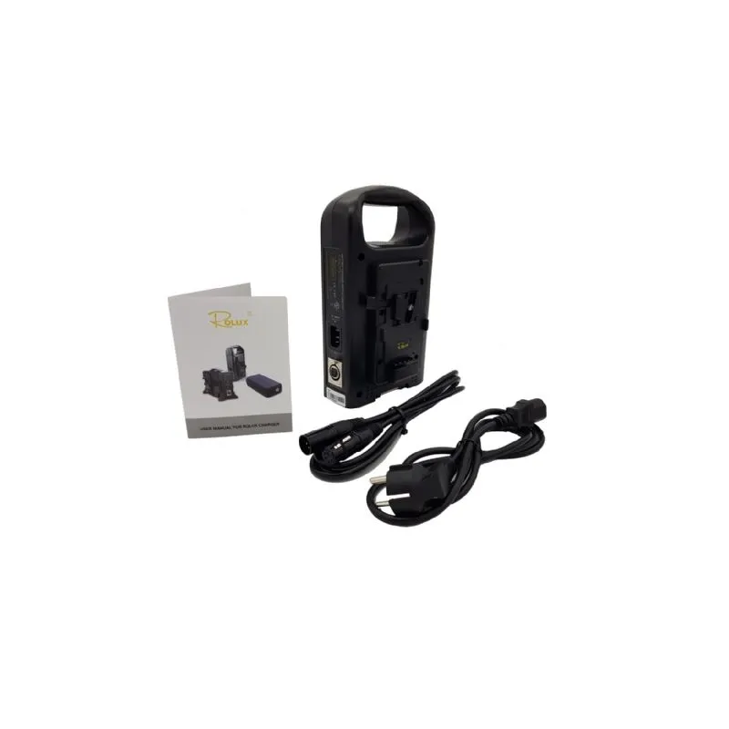 Rolux Dual Battery Charger RL-2KS yra profesionalus akumuliatorių įkroviklis, skirtas V-Mount akumuliatoriams. Jis leidžia vienu metu įkrauti du akumuliatorius ir apima tinklo kabelį bei 4-pin XLR kabelį, leidžiantį tiesiogiai tiekti energiją bet kuriai vaizdo kamerai su 4-pin XLR jungtimi.