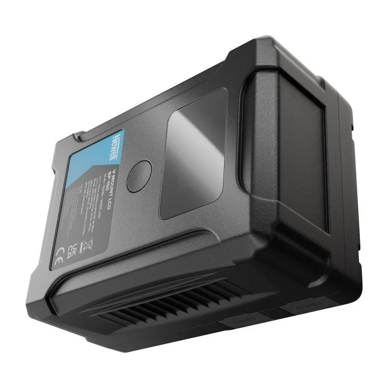 Specification model: Newell BP-150 LCD V-Mount capacity: 10500 mAh (155 Wh) voltage: 14.4 volts Inputs: USB-C (max. 65 watts - Power Delivery) D-Tap (max. 8 A) Outputs: USB-C: 5 V / 3 A, 9 V / 3 A, 12 V / 3 A, 15 V / 3 A, 20 V / 3.25 A (max.) USB-A: 5 V / 3 A, 9 V / 2 A, 12 V / 2 A (max), 4.5 V / 5 A, 5 V / 4.5 A (max) D-Tap: 14.4 V / 14 A (max) Weight: 820 g Kit contents Newell BP-150 LCD V-Mount battery