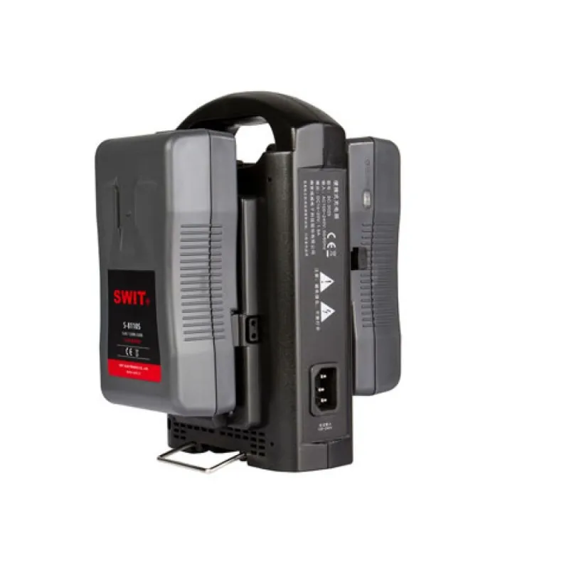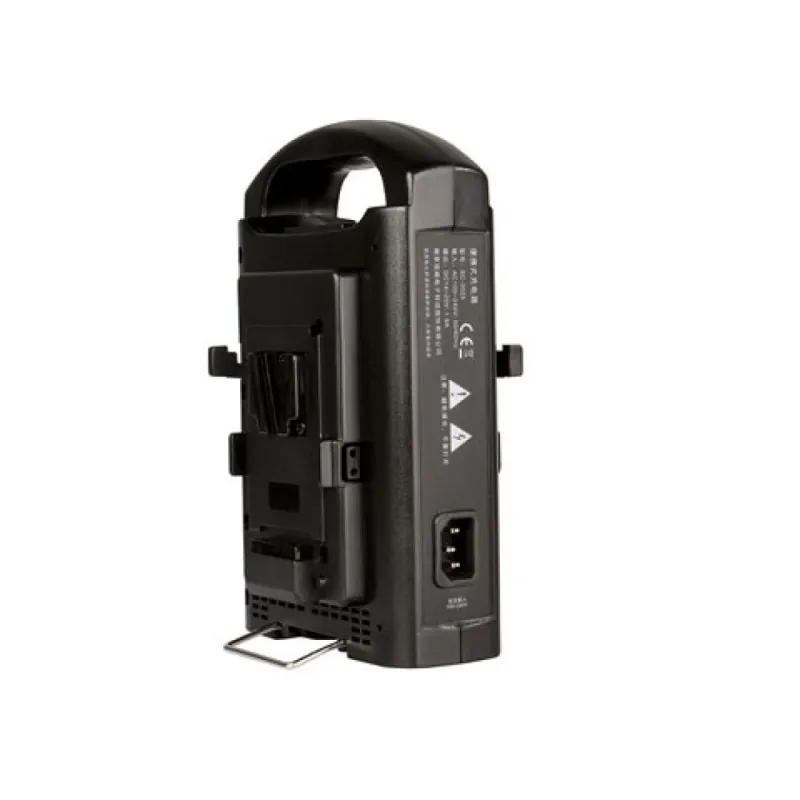 The SC-302S has 2 V-mount plates and can charge 2 batteries one-by-one sequentially. The charging output is DC 14-20V, 1.9A.