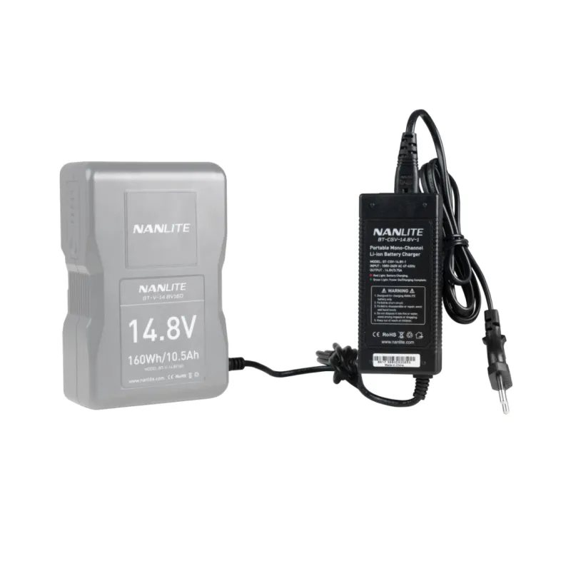 Designed to charge a Nanlite 14,8 V-mount battery.