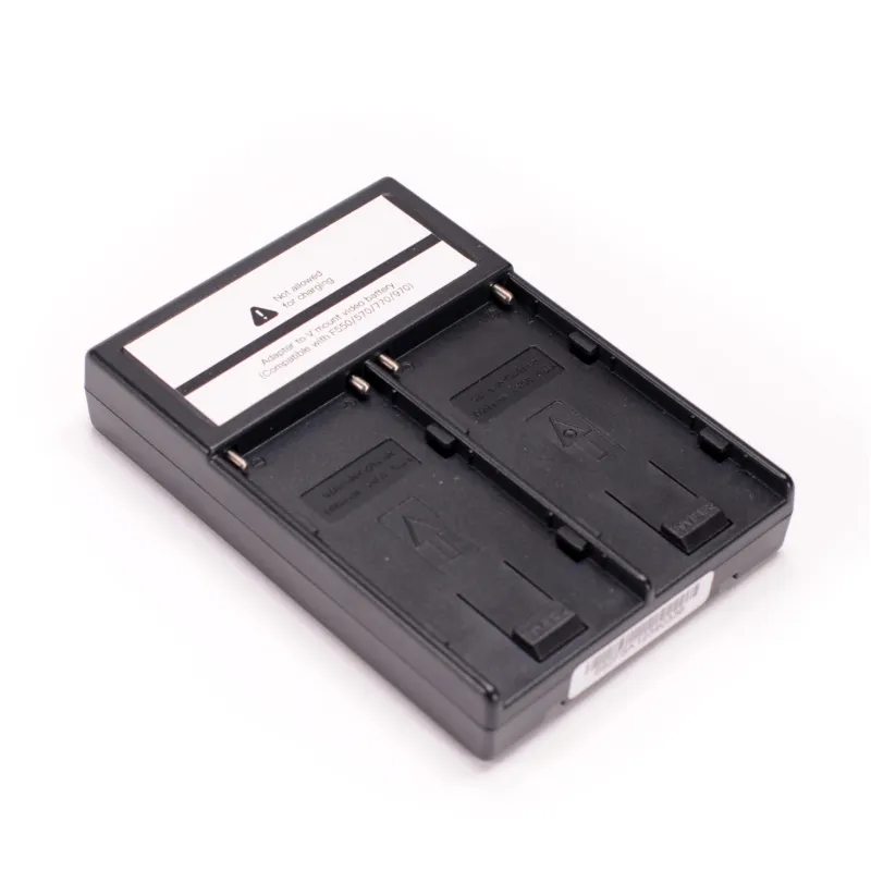 This adapter can make two NP-F series batteries and supports most F550 F5570 F770 F970 batteries.