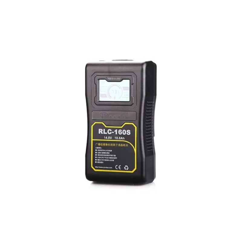 3The Rolux V-Mount Battery RLC-160S is a professional Lithium Ion battery with a capacity of 10.8Ah and 160Wh with LCD display. The battery status is displayed on the LCD display. The Battery is has a no memory function, which means that you can charge the battery at any time even if the battery isn t completely empty. That way it won t have any effect on the performance of the battery. Charging the battery will take approximately 2.5 hours with the Rolux 2KS. Battery Charger is not included, but can be found in the optional accessories tab below.