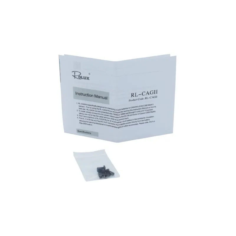 1x RL-CAGII battery holder; 1x Screw set; 1x Manual; 1x Packaging