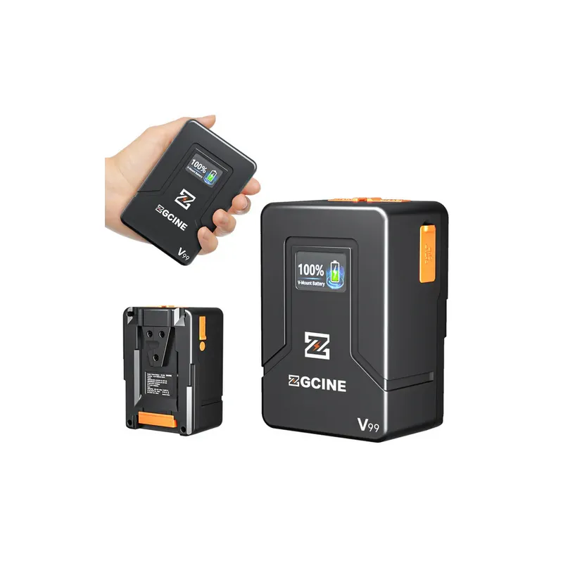 The ZGCINE V-Mount Battery 16.8V, 99WH is a powerful and versatile battery designed for professional film and video equipment. It features USB-C PD 45W fast charging, an OLED screen for real-time power monitoring, and multiple output options including USB-C, USB-A QC, and D-Tap/BP.