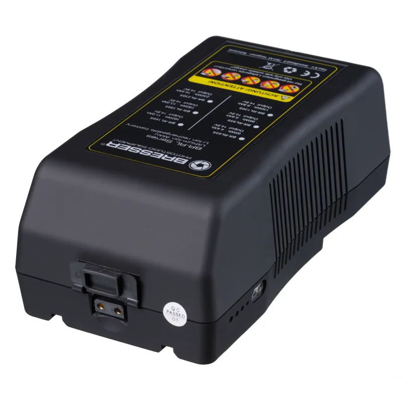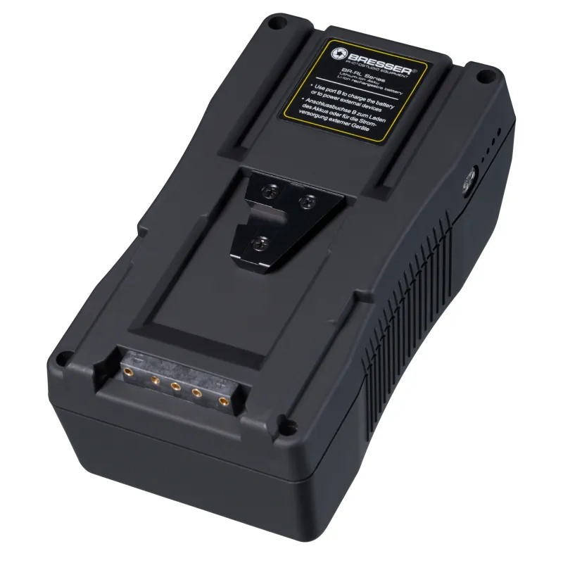 The Bresser lithium batteries with V-Mount connection are made of high-quality materials which ensure optimum performance and a long service life. On the side of the battery are four LEDS showing the remaining charge. A full battery is to be used on 30W up to 4 hours. The guarantee on batteries and accumulators is three months.