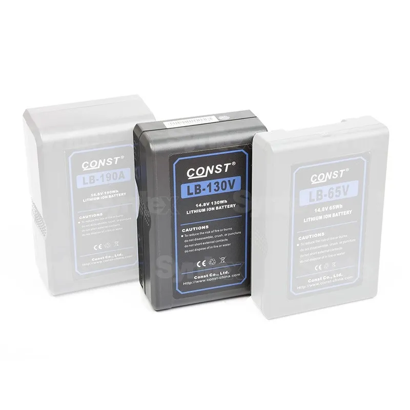 CONST's V-Mount Li-ion camera batteries are compatible with all professional cameras that are powered by Sony V-Mount batteries (e.g. BP-L40, BP-L60 or BP-L90) with 14.8V. In addition to the corresponding terminals (D-Tap, circular contact), the batteries are equipped with a four-segment LED indicator that shows the state of charge. Of course, there are circuits for protection against abnormal current or voltage loads and against unacceptable battery temperature