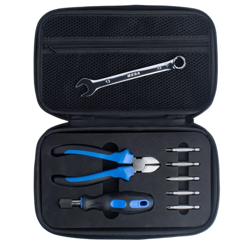 Cutting pliers to adjust the length of the clamps of the fixing kit after installation if necessary.All these tools are contained in a reusable carrying case.