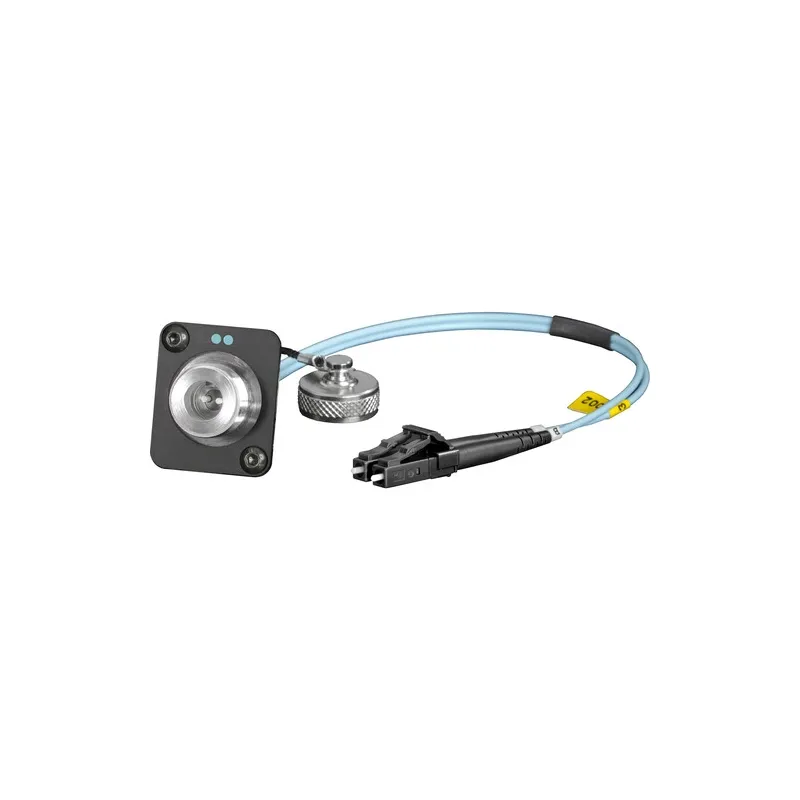 2Core connector for mounting in a 19-inch chassis or panel, with standard D-size form factor, which connects to your 2Core main cable. On the back, it features a 0.5 meter fanout with an LC Duplex connector.