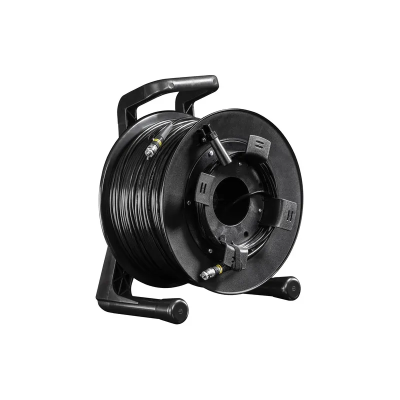Fieldcast makes fiber cables specifically for the AV market, such as live events and broadcast applications. Fiber cables allow you to bridge much longer lengths than copper cables, and 4K is also no problem. The cable is robust, easy to use, flexible and affordable. Available in Ultra Light and Heavy Duty.