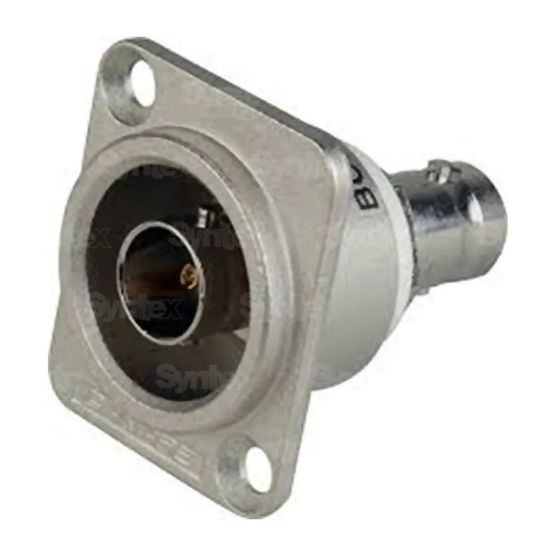 The Canare BCJ-JRUDK is a 75 ohm double-sided BNC(F) / BNC(F) connector designed for patch panel mounting with Neutrik D type holes in a nickel finish.