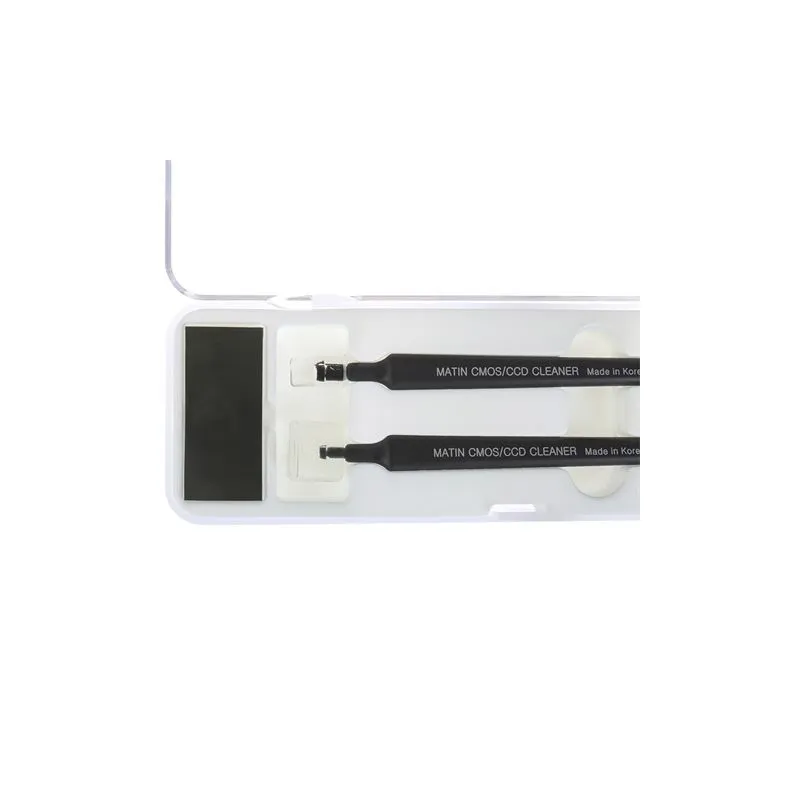 The Matin M-6361 Sensor Cleaning Kit is designed to easily clean the sensor of your SLR camera. The kit comes with two different sized cleaning sticks and small mat, which you can use to clean the cleaning sticks.