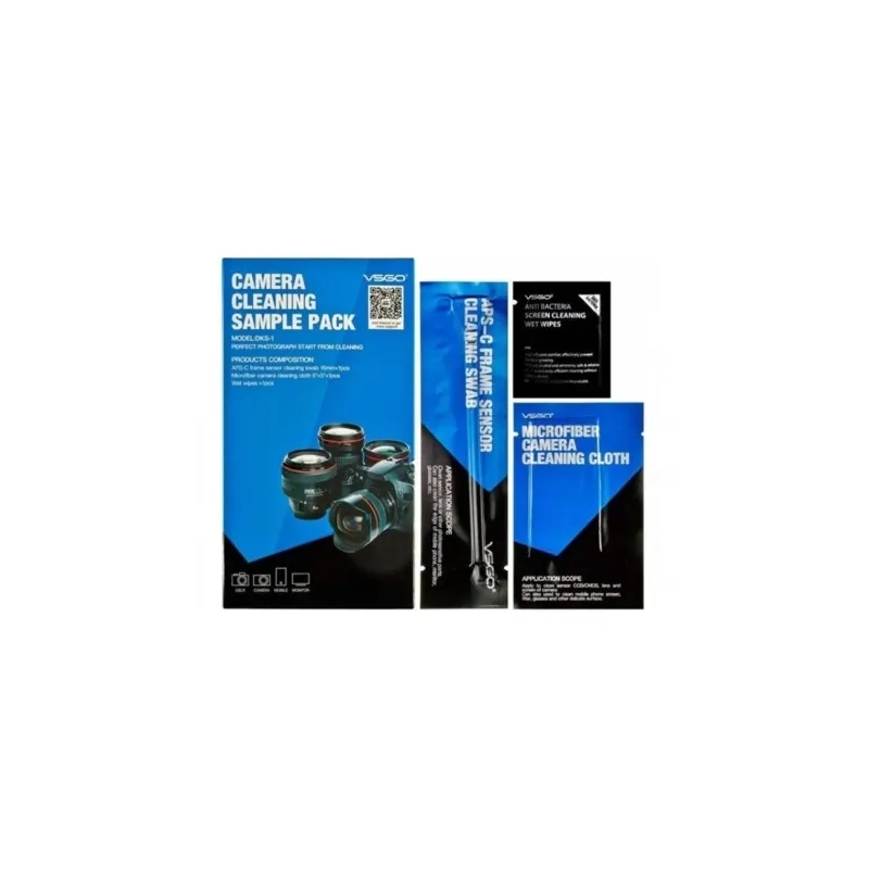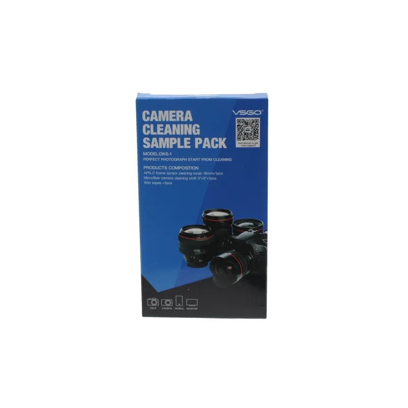 The vsgo camera cleaning sample pack contains an APS-C Sensor Swab 16mm, a damp cleaning cloth and a microfiber cleaning cloth. With the Sensor Swab you can clean the APS-C sensor of your DSLR or system camera in a safe way. With the damp cloth and the microfiber cloth you can thoroughly clean the camerabody.