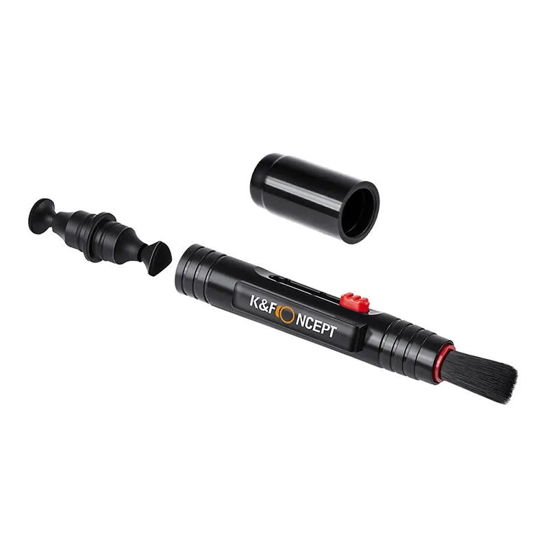 Take care of the cleanliness of your cameras lens and screen. The K&F Concept cleaning pen is distinguished by its telescopic design - using a dedicated slider, youll slide out a soft brush with which to clean your camera screen. On the other side of the product is a double head: round and triangular, which will allow you to remove dirt from the camera lens. The product will also work well for a smartphone screen, magnifying glass, etc.