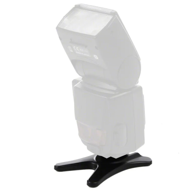 The Flash Stand provides a stable stand on even ground for your shoe mount. Additionally, the Flash Stand includes a tripod thread to place the shoe mount on a tripod.
