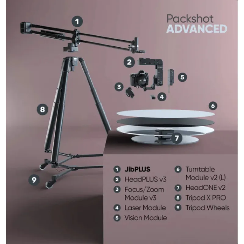 Constructed from CNC-machined aluminum, this system is lightweight yet durable, perfect for studio and on-location shoots. Whether capturing product showcases or cinematic transitions, the JibPLUS Advanced bundle offers creative flexibility.