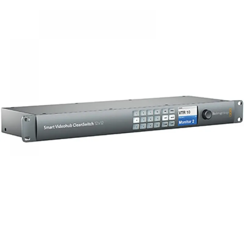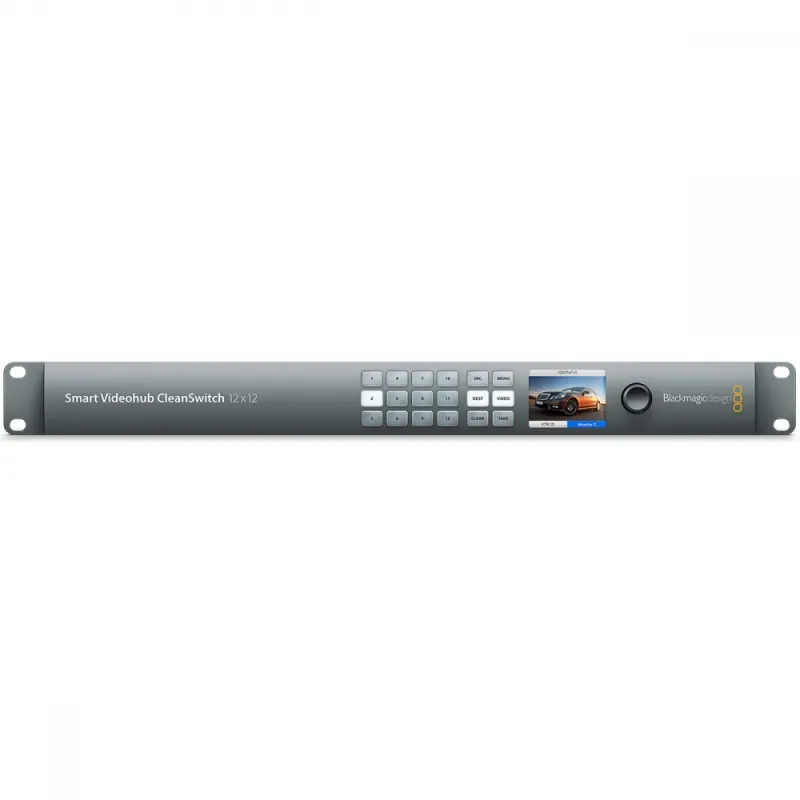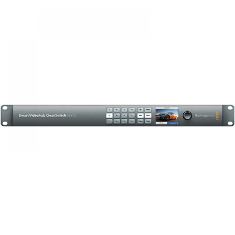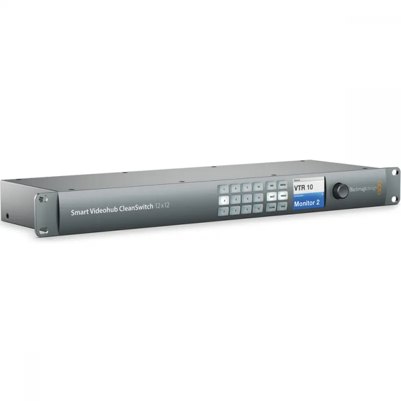 Blackmagic Design Smart Videohub CleanSwitch 12x12 is a new mixed format SD, HD and Ultra HD router that features full re-synchronization on every input for completely clean switches between non synchronized router crosspoints.