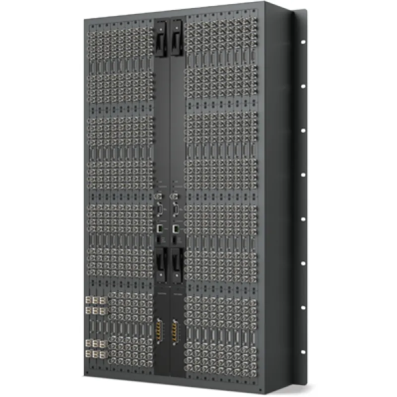 This Rack Fame lets you add up to 72 BNC SDI or optical fiber SDI interfaces plus a single 72 x 72 or dual 288 x 288 crosspoint cards and up to two power cards. Add a single crosspointfor affordability, or add dual crosspoint and power cards for full redundancy. Includes removable fan tray and fans.