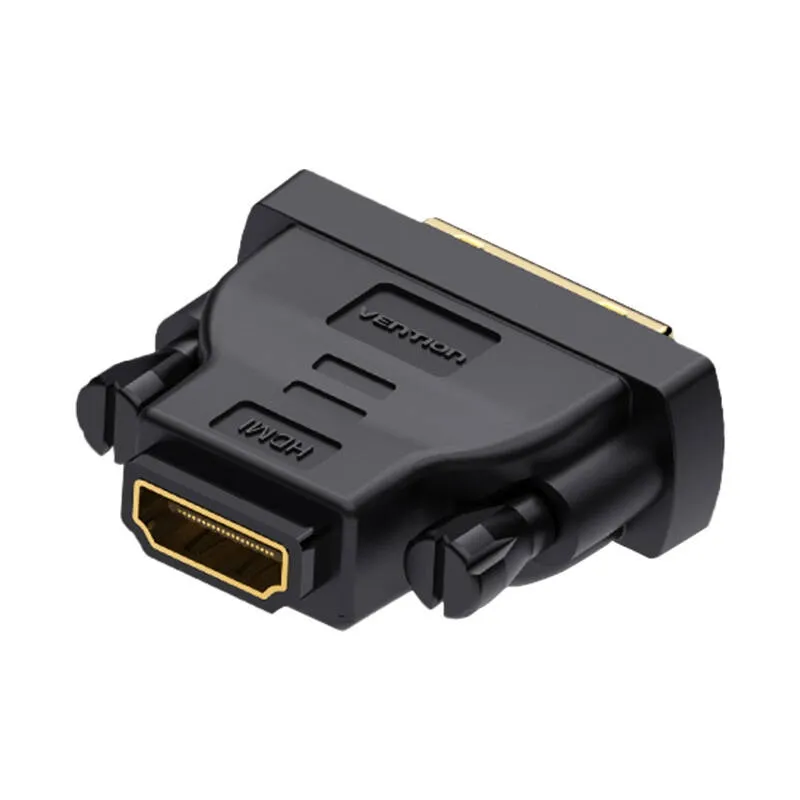 Ventions DVI (24+1) male to HDMI female adapter provides dual transmission, enabling stable connection for devices with DVI (24+1) and DVI (24+5) ports, including desktops, laptops, set-top boxes, Blu-ray players, consoles, projectors, monitors and TVs. It supports 1080p transmission and 1920x1080 resolution for clear and crisp images. Gold-plated connectors ensure durability and reliability of digital signal transmission.