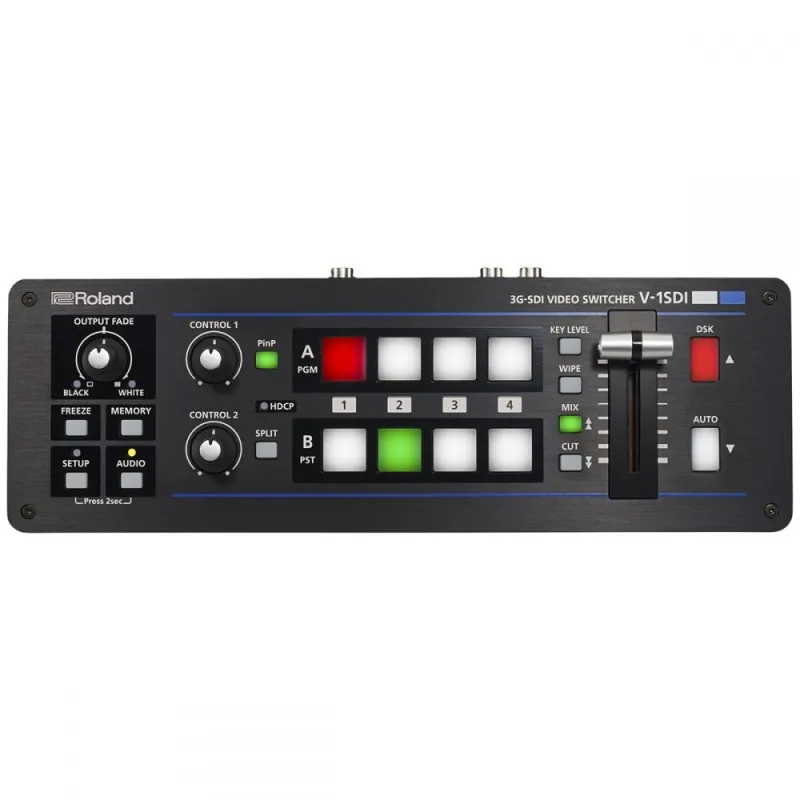 V-1SDI is a flexible and versatile video switcher that makes it easy to connect and switch professional 3G SDI cameras and playback sources along with HDMI sources including cameras, smart phones, computers, tablets, Blu-ray players. Compact and portable, the V-1SDI delivers professional switching results with its easy to use hardware interface complete with T-Fader and easy-to-see backlit buttons.