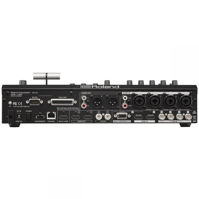 An easy-to-use software application V-60HD RCS for Mac or PC provides setup and control information for the Roland V-60HD through a network port. Copy, store and recall memory (backup) and preset settings. The V-60HD is equipped with an RS-232 port for control and operation remotely from a touch panel or other programmable interface device.