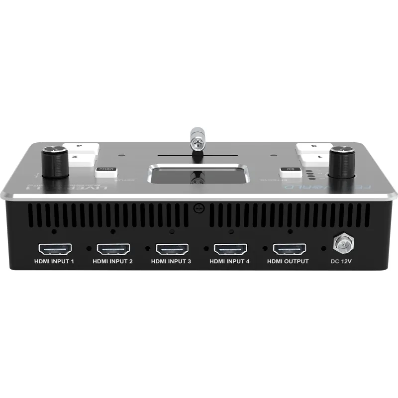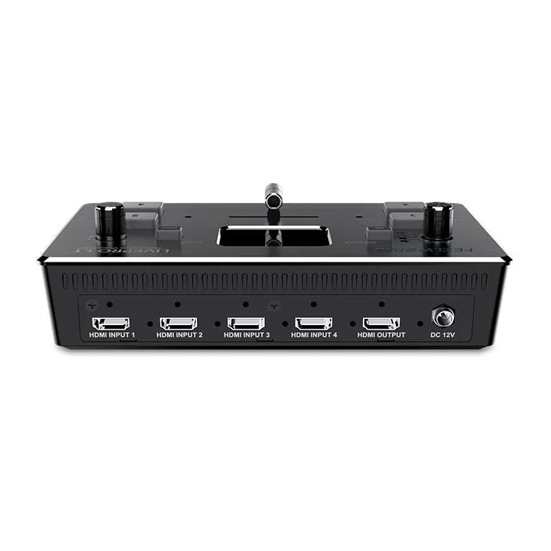 Daudzformātu video mikseris 4 x HDMI ieejas vairāku kameru producēšanai un reāllaika tiešraides straumēšanai.