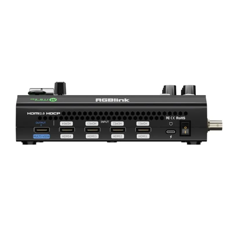 RGBlink Mini-ISO yra kompaktiškas vaizdo maišytuvas su 4K HDMI ir SDI įėjimais, palaikantis transliaciją į kelias platformas.