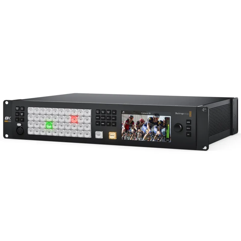 The new ATEM Constellation 8K is an Ultra HD live production switcher with so many features, customers can combine them all to make an incredibly powerful 8K switcher. Customers get 4 M/Es, 40 x 12G-SDI inputs, 24 x 12G-SDI aux outputs, 4 DVEs, 16 Keyers, 4 media players, 4 multi viewers, 2 SuperSource and standards conversion on every SDI input. Then when switched to 8K, all these features combine to make a powerful 8K switcher.